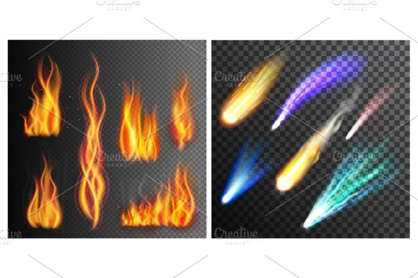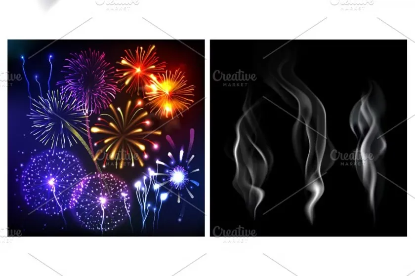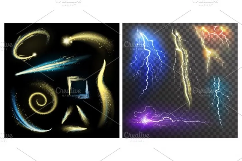 30+烟花闪电流星彩虹火焰爆炸烟雾等创意设计矢量素材 Big Graphic Effects Set