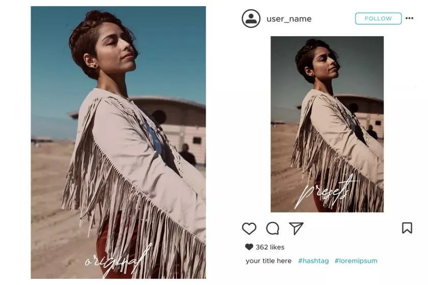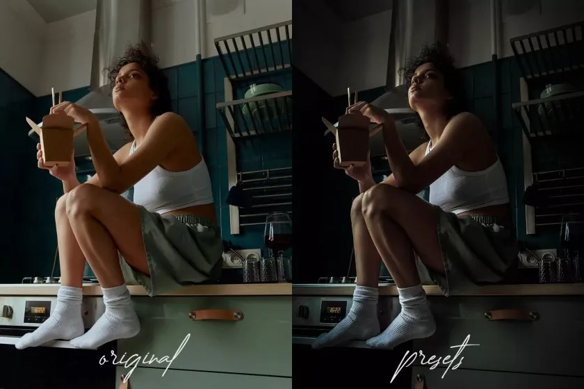 要使用预设,只需将它们添加到 Lightroom(安装说明在文本文件中提供)。使用预设后,如有必要,只需调整曝光即可。