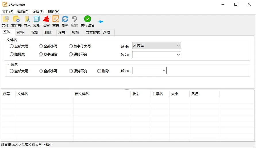 zRenamer是一款小巧实用的高效批量重命名工具。zRenamer支持拖拽/右键操作与正则替换,提供文本自由改名及模板自定义,集成插入/替换/序号等9种改名模式、文件列表管理等功能。软件轻巧不冗余、页面直观、功能简洁、操作便捷高效。