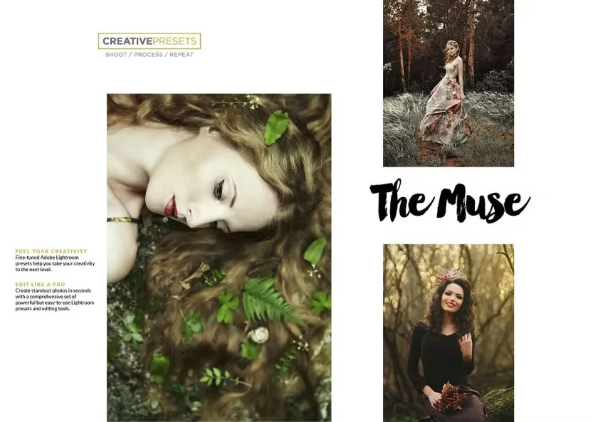 Muse Collection 包括为您的图像添加色彩和深度的效果,营造出一种特殊的梦幻氛围。无论您是新生儿、家庭、肖像、孕妇还是婚礼摄影师,Muse 系列都将帮助您让您的所有照片发挥最大潜力。