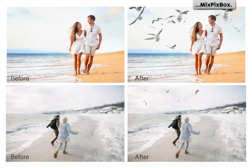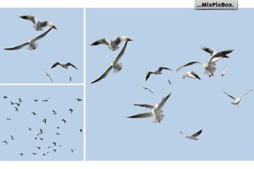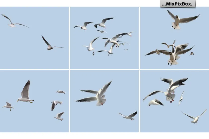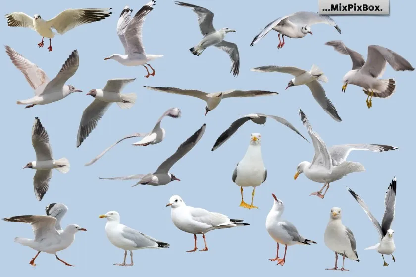 家庭照片、浪漫照片、广告、传单、网站——海鸥纹理无处不在。彩色图像以及简单朴素的轮廓同样美丽优雅。无论表演风格如何,鸟儿总能给你的作品带来某种浪漫和轻盈的效果。