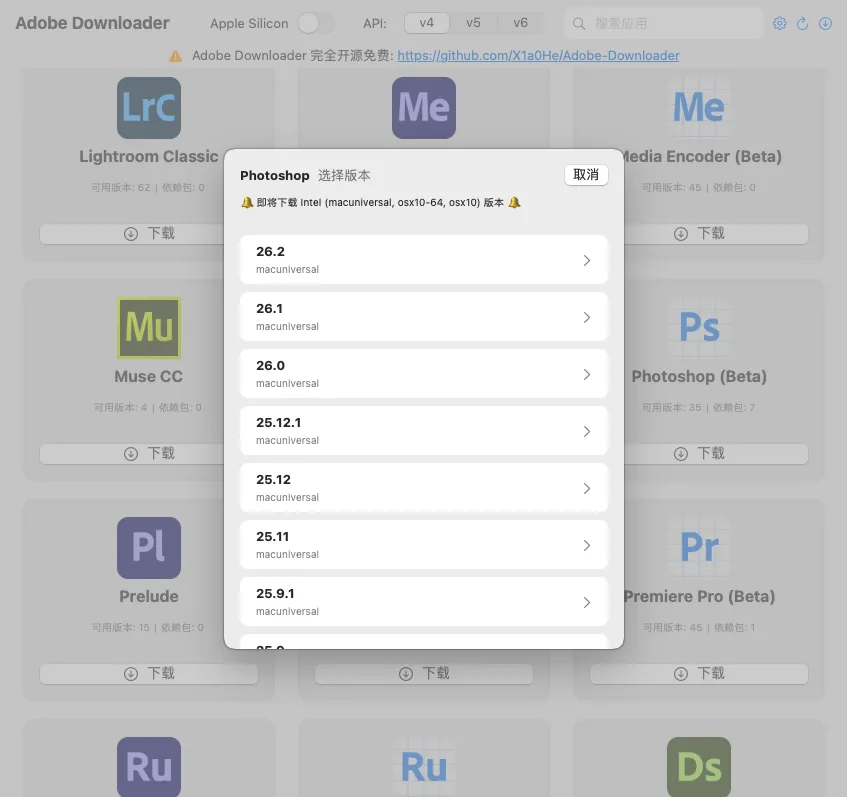 Adobe Downloader是一个专为macOS用户开发的Adobe应用下载与安装工具。它支持多种Adobe产品的下载,用户在安装前只需确保系统中存在Adobe Setup组件。工具提供全自动的安装过程,确保安全和高效,使用时只需输入密码即可完成安装。对于需要管理多个Adobe应用的用户来说,这无疑是一个便捷的选择。