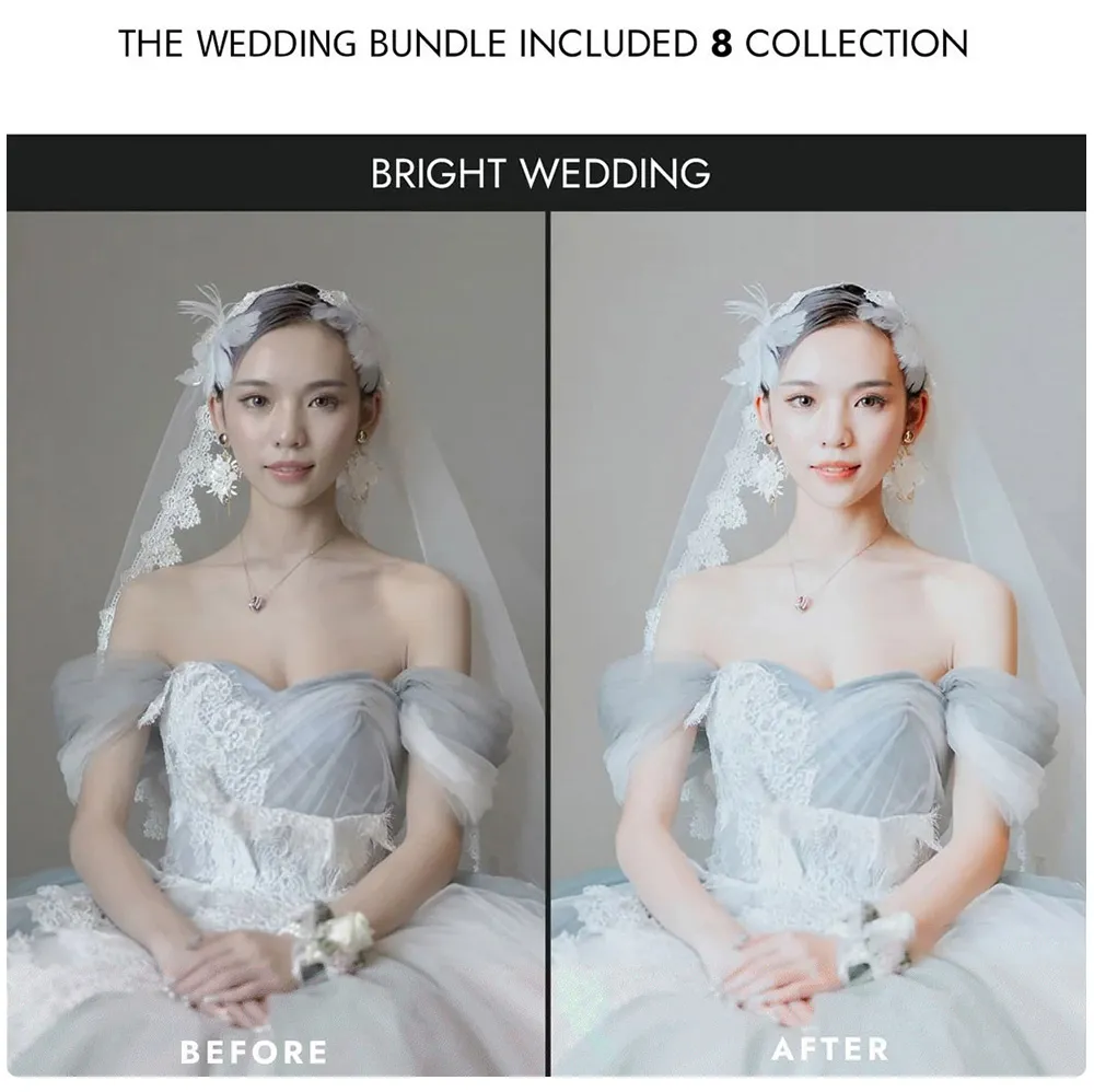 Wedding Bundle 旨在为您的照片带来神奇而经典的爱情故事感觉。从戏剧性的爱情故事到经典的肖像,这些预设和灯具是与婚礼相关的一切的完美选择。 根据您的相机设置、照明条件、白平衡设置、主色等,您可能需要稍微调整预设的设置,以使您的照片和视频看起来完美。