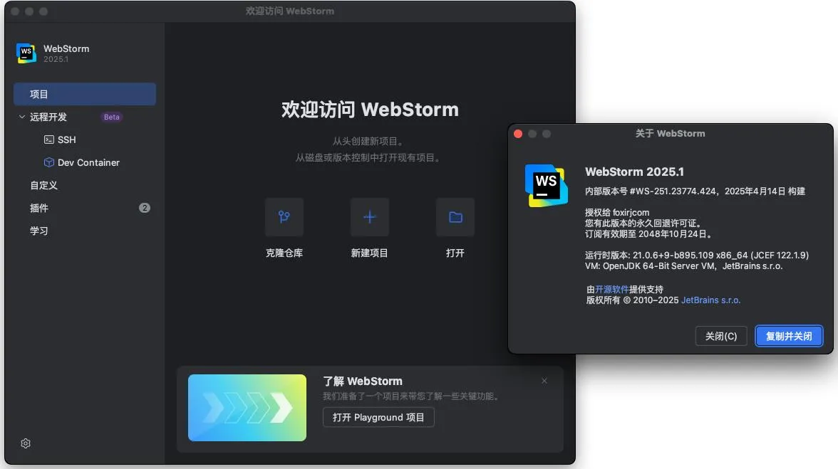 🎉官方已提供中文!该密钥支持全套JetBrains产品,一码通用激活,✅ 支持intel ✅支持M1-4,🌟后续版本也只同步这篇文章