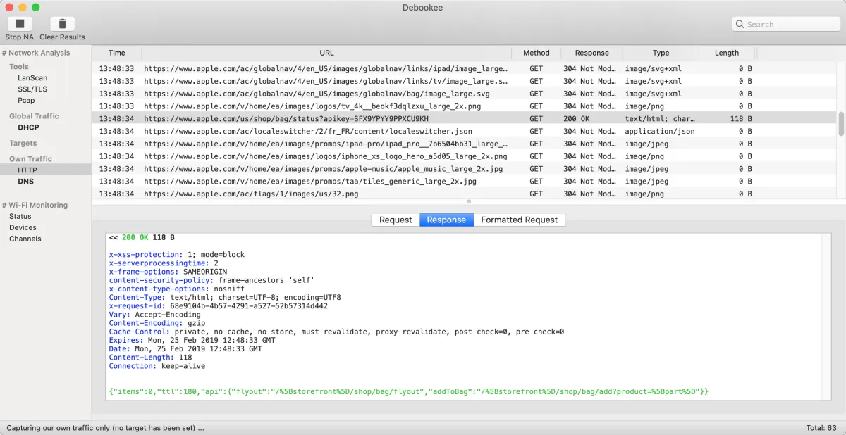 - 数据包捕获和分析:Debookee允许您捕获网络数据包,以便深入分析通信流量。它提供了数据包解码功能,可以帮助您查看HTTP、HTTPS、DNS、TCP、UDP等协议的数据包内容。