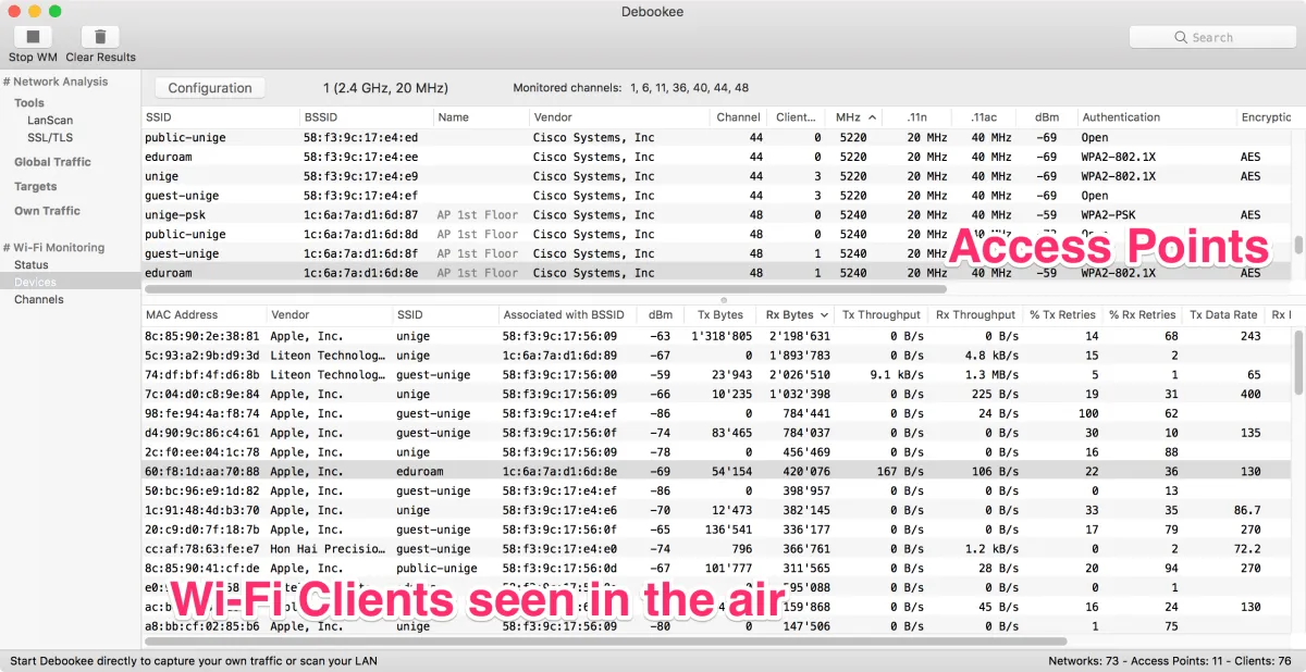 - 网络流量监控:Debookee可以实时监视您的Mac电脑上的网络流量,包括Wi-Fi和以太网连接。您可以查看数据包、连接和协议的详细信息。
