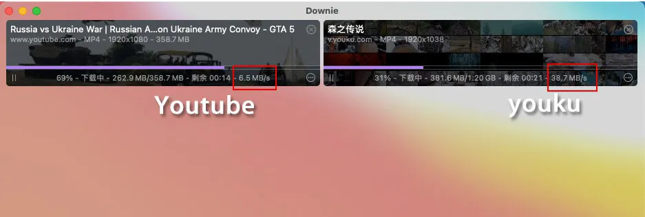 Downie 也支持国内大部分视频网站,例如腾讯,爱奇艺,优酷土豆,搜狐,芒果TV等,下载速度也是非常的快,没有任何限制,基本取决于你自己的宽带速度。刚刚发布的Downie v4相比于v3的话,很多网站视频的加载速度都得到了提升,尤其是 YouTube 视频加载速度提高了6倍,非常帮的一款网页视频下载工具。