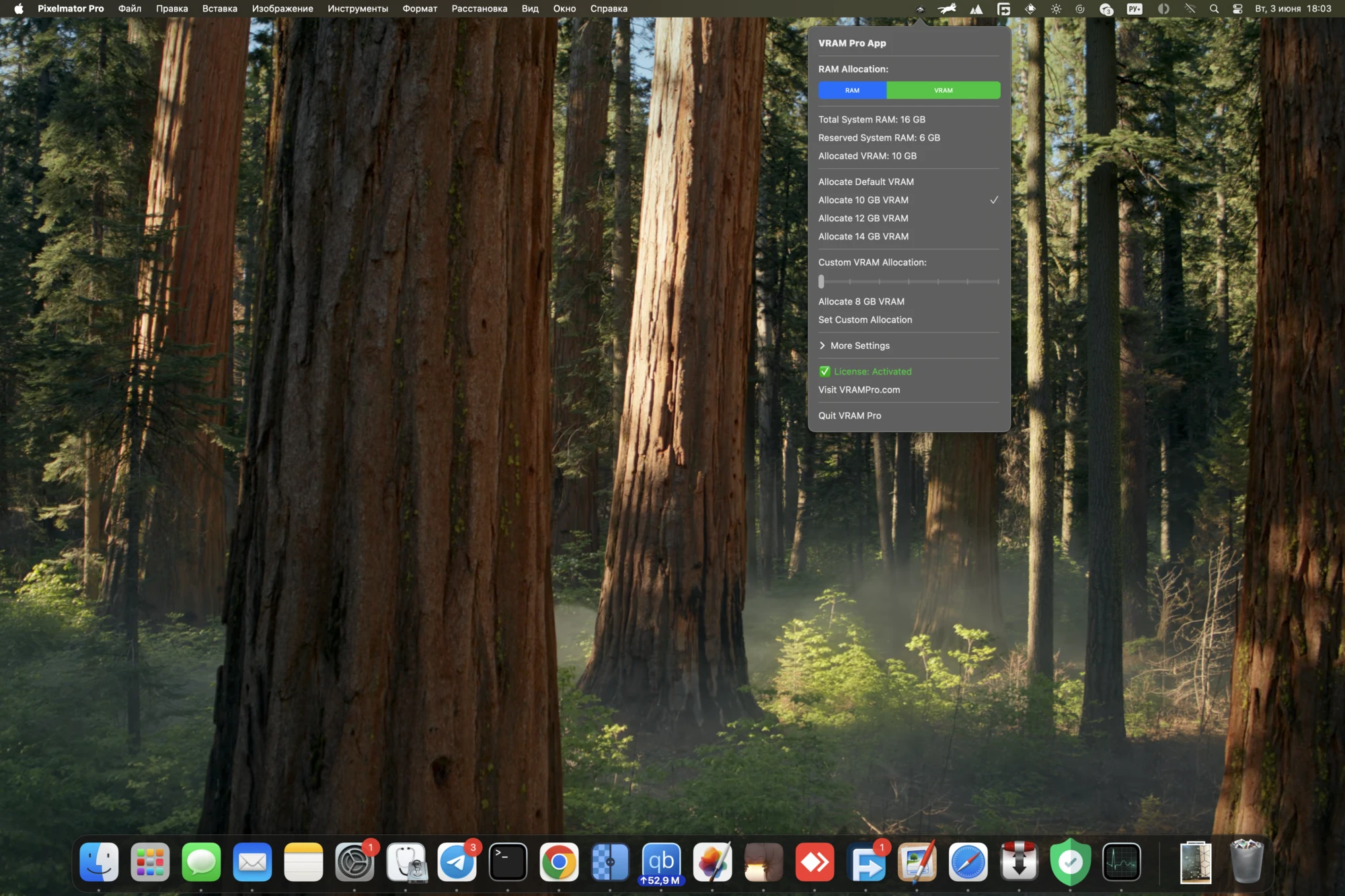 macOS通常会自动管理GPU内存——对于休闲使用来说很好,但对于高级用户来说却成了瓶颈。VRAM Pro让你掌控一切。