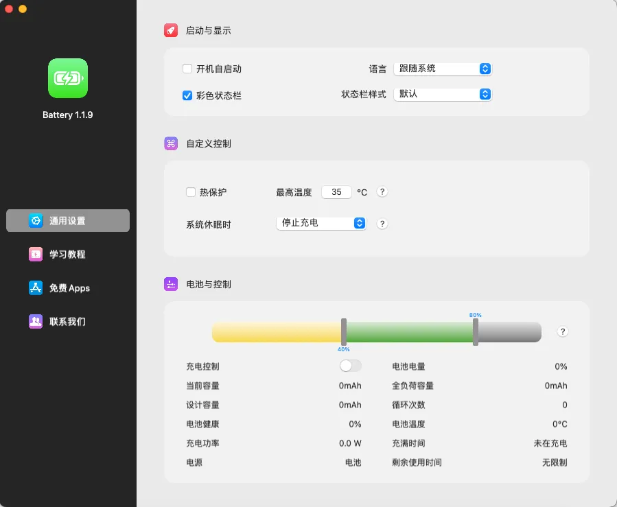 该软件设计轻量级,占用系统资源极少,不影响Mac的其他操作。后台运行方式确保用户在不干扰正常工作的情况下进行电池管理。 - 用户友好界面