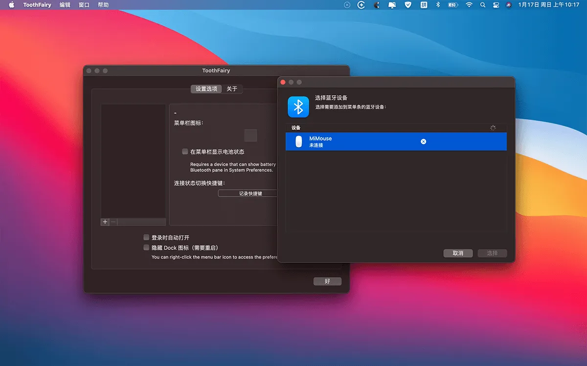 ToothFairy 支持将多个蓝牙设备图标添加至状态栏,并显示当前连接状态,方便用户一目了然地查看设备连接情况。 -