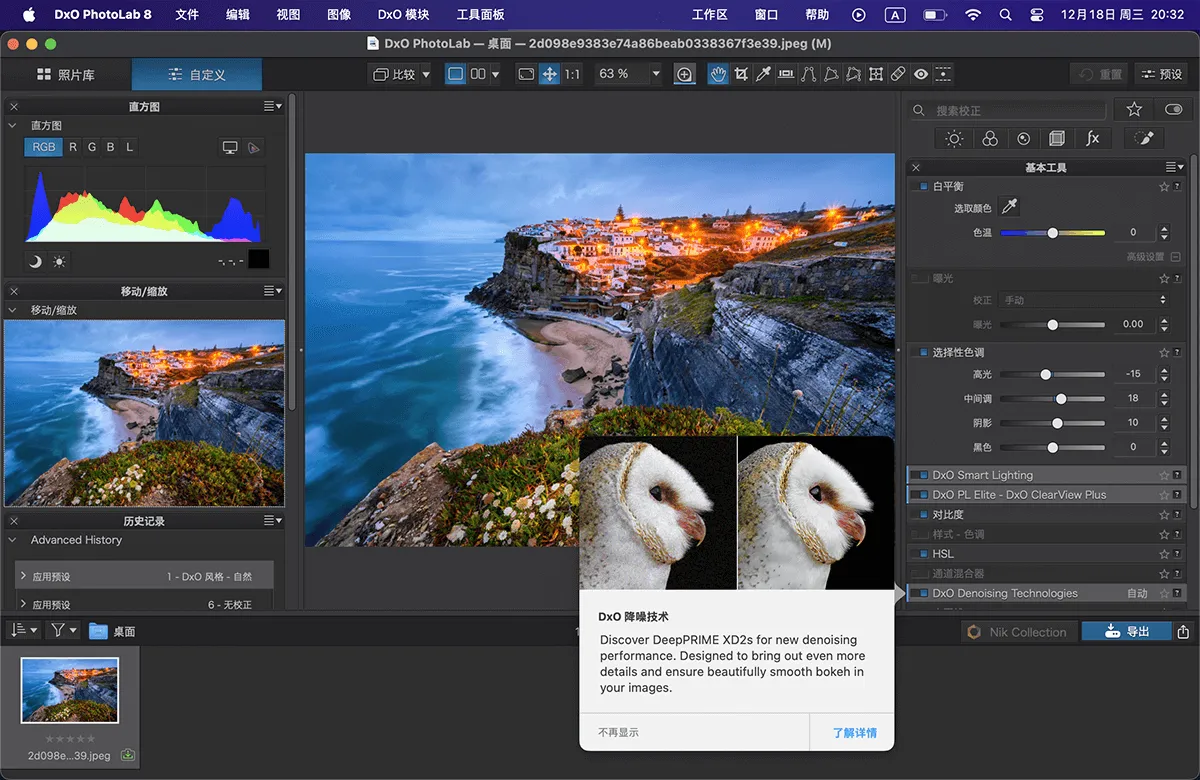 DxO PhotoLab 是经过二十年尖端研究与开发的旗舰级 RAW 照片编辑软件。 过去五年中,它凭借为摄影爱好者打造的强大创新工具,连续获得行业大奖, 为您呈现令人惊艳的照片效果。PhotoLab 8 为您呈现难以置信的降噪和细节提取,加之开创性的镜头配置文件,共同打造出优异的图像品质,远超您的相机和镜头自身的极限。PhotoLab 8 专为满足最苛刻的摄影师而设计,在其成像工作流程的每个步骤中都采用了先进的色彩科学,以及用于调整色调、色彩、局部调整等的精巧工具,所有这些都具有极高的保真度,让您完全掌控一切。