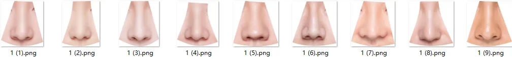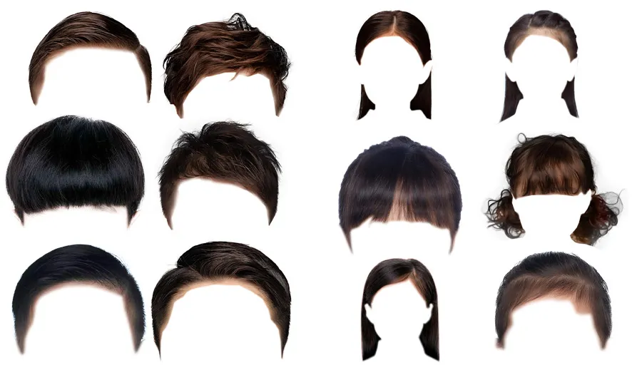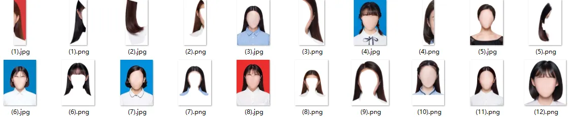 证件照修饰素材-发型62款(大人和儿童)+ 男女五官素材110款(头发、眉毛、睫毛、鼻子、嘴巴、牙齿、脖子、双眼皮)+五官PS笔刷