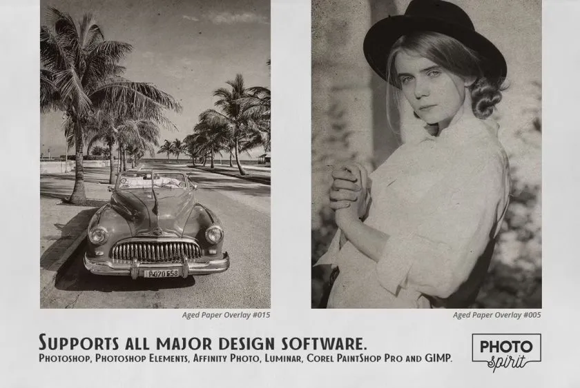 包含 30 个旧纸效果叠加层的宏伟集合,可确保您的照片获得新的魅力、艺术性和情感。