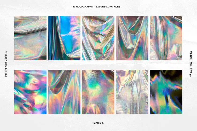 10 个全息纹理 JPG,200 DPI,1600 x 2200 像素