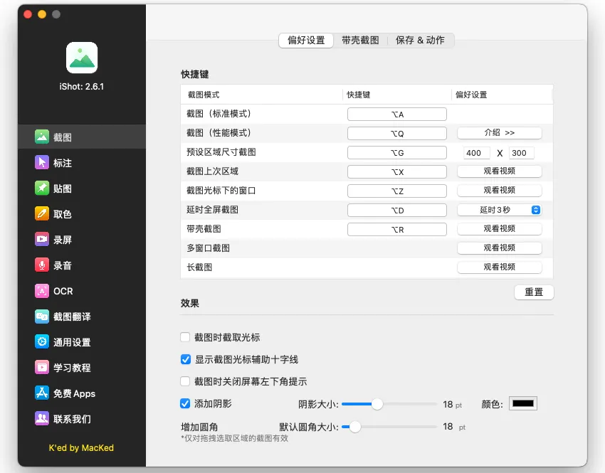 Shot 是一款专为 macOS 用户打造的多功能截图与屏幕标注工具,集成了区域截图、窗口截图、滚动截图、屏幕录制、图片快速编辑等多种实用功能。该软件旨在提升 Mac 用户在日常办公、内容制作、技术支持、教学展示等场景中的视觉信息处理效率。iShot 的界面设计贴合 macOS 原生风格,操作逻辑清晰,响应迅速,支持快捷键自定义和高分辨率屏幕兼容,能够满足从基础用户到专业用户的各种截图与编辑需求。