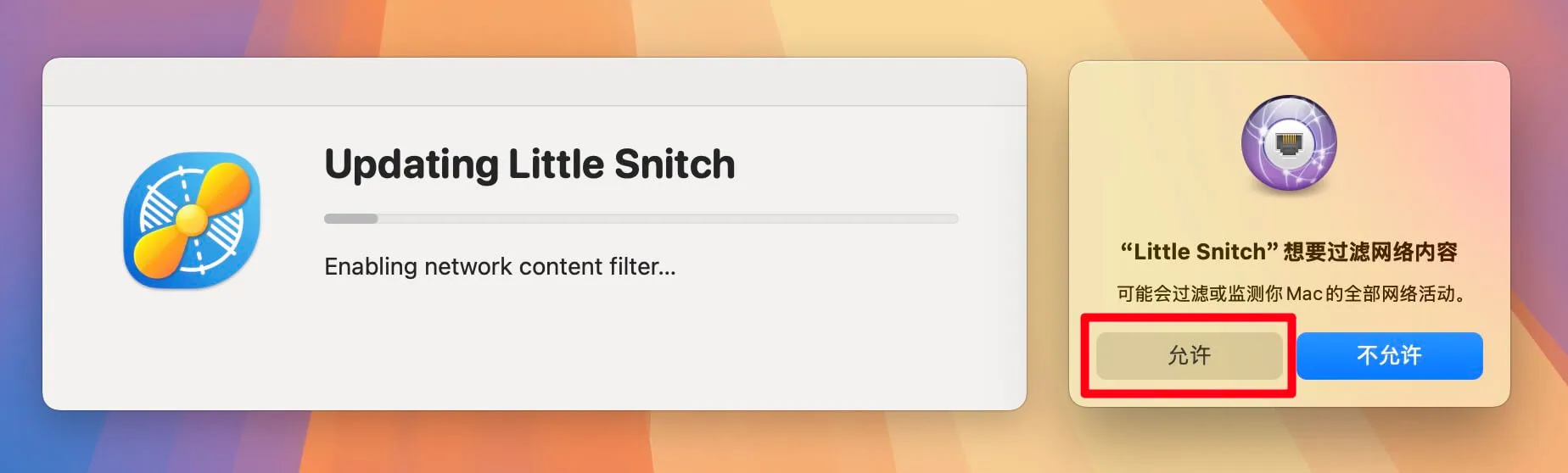 如果遇到系统提示“无法加载扩展”,请在“系统设置”>“隐私与安全性”中允许 Little Snitch 的扩展。 - 规则冲突导致网络连接异常