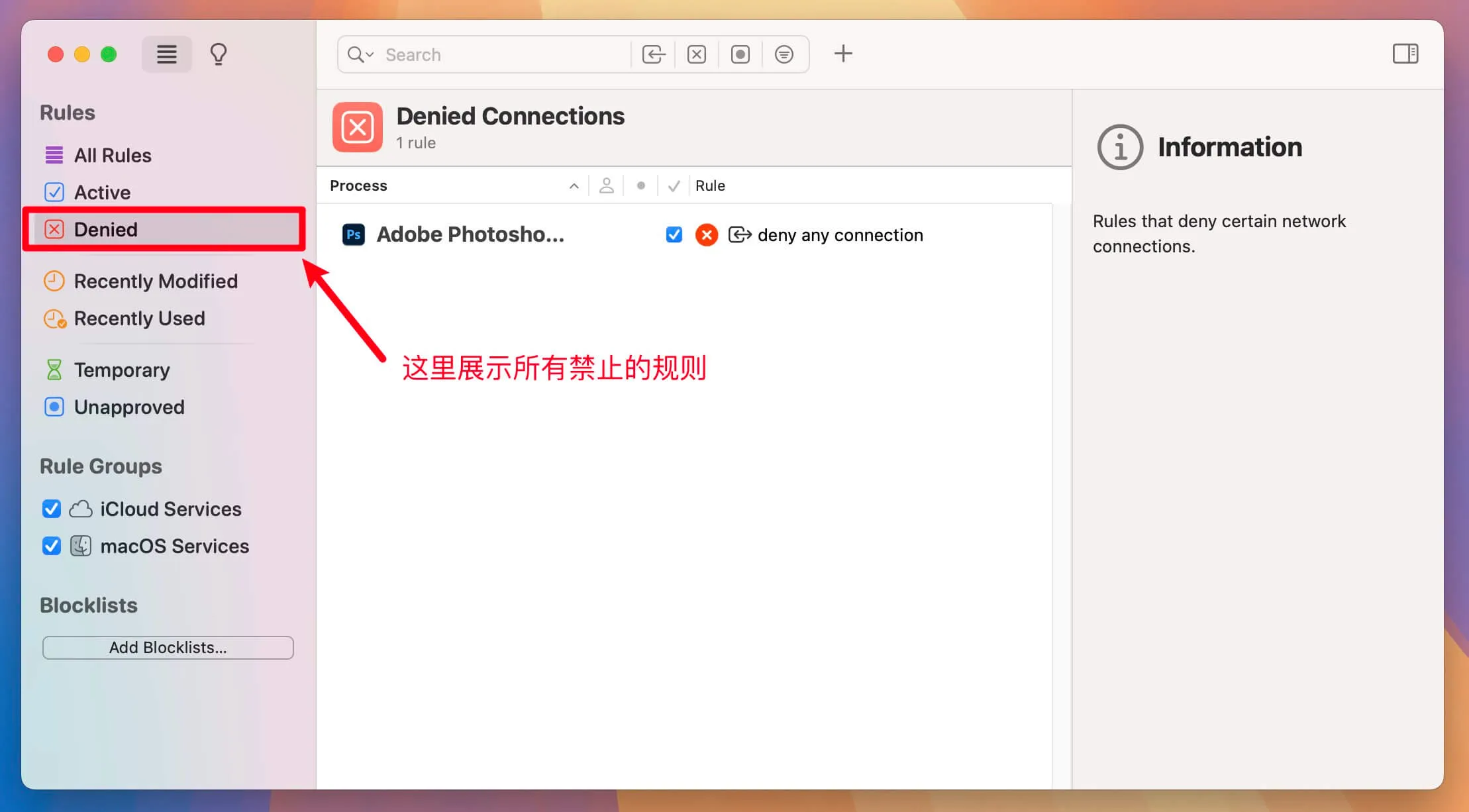 第十一步:查看创建的禁止规则