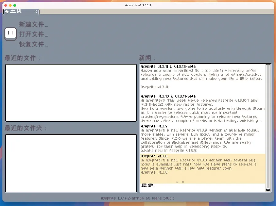 在Mac上使用Aseprite,整体界面干净、复古而高效。其经典的像素UI风格与macOS现代系统并不冲突,反而营造出专注创作的氛围。软件启动迅速,占用资源轻微,哪怕在中低配Mac设备上运行也非常流畅。通过触控板与快捷键结合操作,图层切换、帧编辑、吸色绘图等流程十分顺畅。对于从事像素动画设计的用户来说,Aseprite 的帧控制与图层动画合成功能极具生产力,在创作过程中几乎不会出现延迟或系统卡顿。