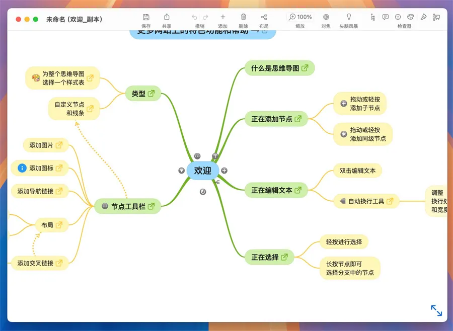 内建智能布局引擎,可一键优化导图结构,保持视觉清晰;也可手动拖放节点,实现完全自由的个性化排布,满足不同层级与逻辑表达需要。 -