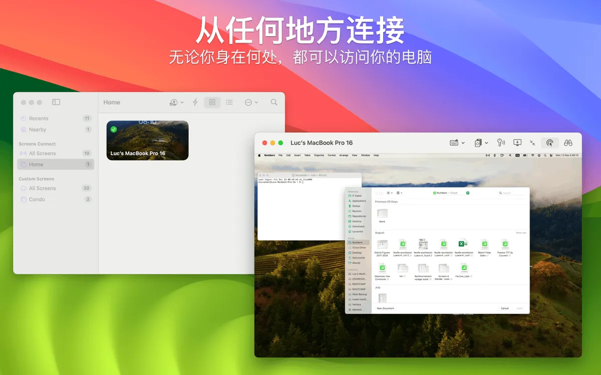无论你是在处理你留在家里的电子表格,还是在另一个大陆的服务器上执行软件更新,或者在家乡帮助你爸爸配置几英里外的电脑,Screens都能为你提供多功能、直观的远程体验。