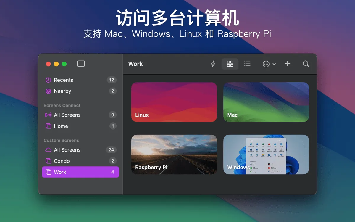 Screens Mac 版是macOS平台上的一款Mac VNC 客户终端,能够自由访问远程计算机设备, Screens Mac 版支持各种强大的远程控制辅助工具,例如剪切板共享、快捷方式自定义、安全连接、多屏幕支持、快速扫描连接等。