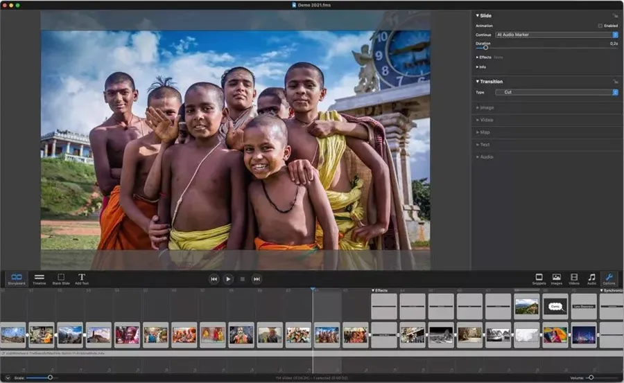 FotoMagico 是一款专为 macOS 用户设计的专业幻灯片与视频故事创作工具,广泛应用于摄影师、讲师、婚礼策划师等视觉内容创作者。它支持将照片、短视频、文字及音乐无缝融合成动态演示,构建视觉叙事。Mac版本全面适配 Apple Silicon 芯片和 macOS 系统,深度整合暗黑模式、Retina 超清显示及触控板手势,界面功能丰富但布局简洁,方便用户轻松创建专业质量的幻灯片与短片。