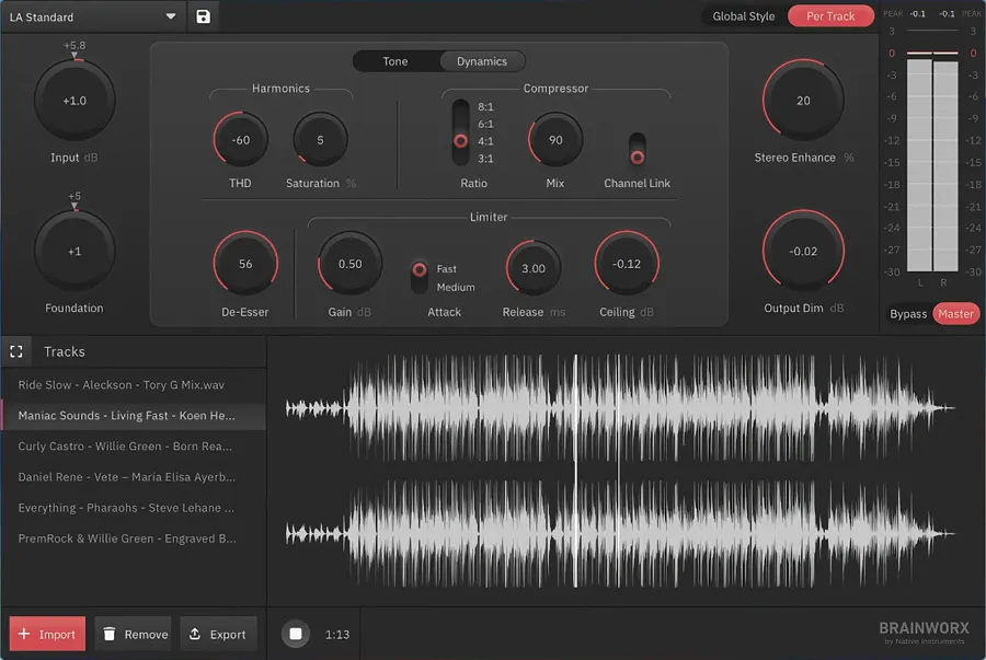 bx_mastering studio 是一款功能全面、界面友好、效率高的免费专业母带处理软件,依靠 Brainworx 的 AI 算法与大师级调音经验,适合音乐、播客、视频等多种内容的母带制作。