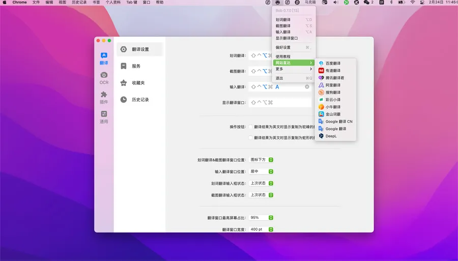 注意!Bob支持PopClip插件调用,划词之后点击相应按钮即可触发翻译。