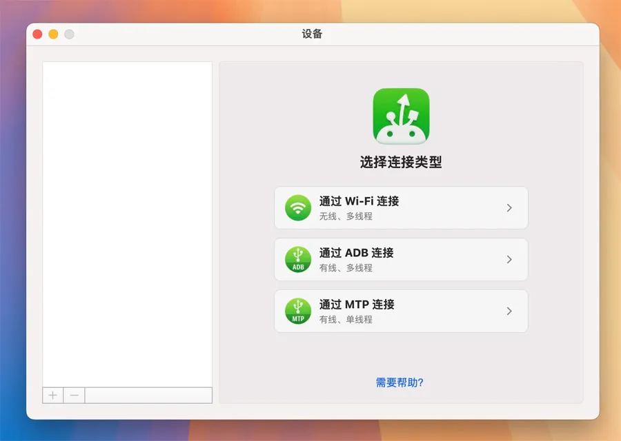 MacDroid Pro 可通过两种连接方式识别 Android 设备:MTP(媒体传输协议)适合普通用户快速访问文件,而 ADB 模式则为开发者提供更高权限与稳定性。