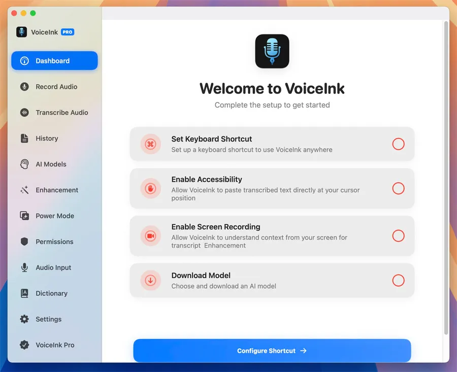 VoiceInk v1.40 (140) 激活版 Mac音频语音转文字工具