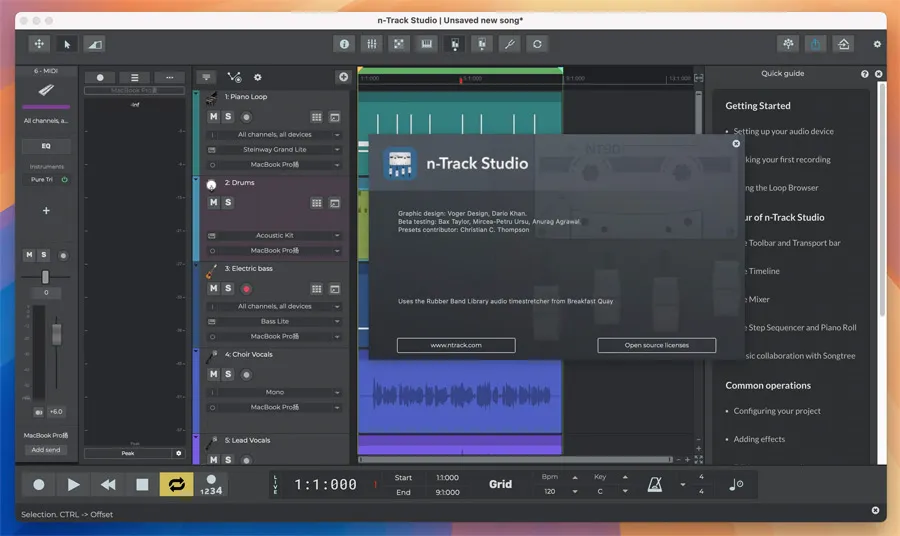 n-Track Studio Suite 10 是一款功能全面的多轨音频录制与编辑软件,专为音乐制作人、音频工程师以及播客创作者设计。Mac版n-Track Studio Suite 10 结合了数字音频工作站(DAW)的核心功能与创新的界面体验,支持多轨录音、MIDI编辑、混音、母带处理等多种专业音频操作。该软件在macOS系统中运行流畅,完美支持Intel与Apple Silicon架构,是Mac用户实现高质量音乐创作、录音与音频后期制作的强大工具。