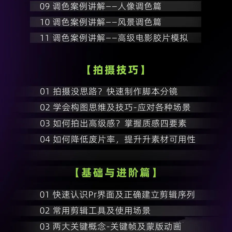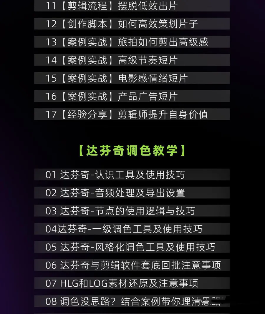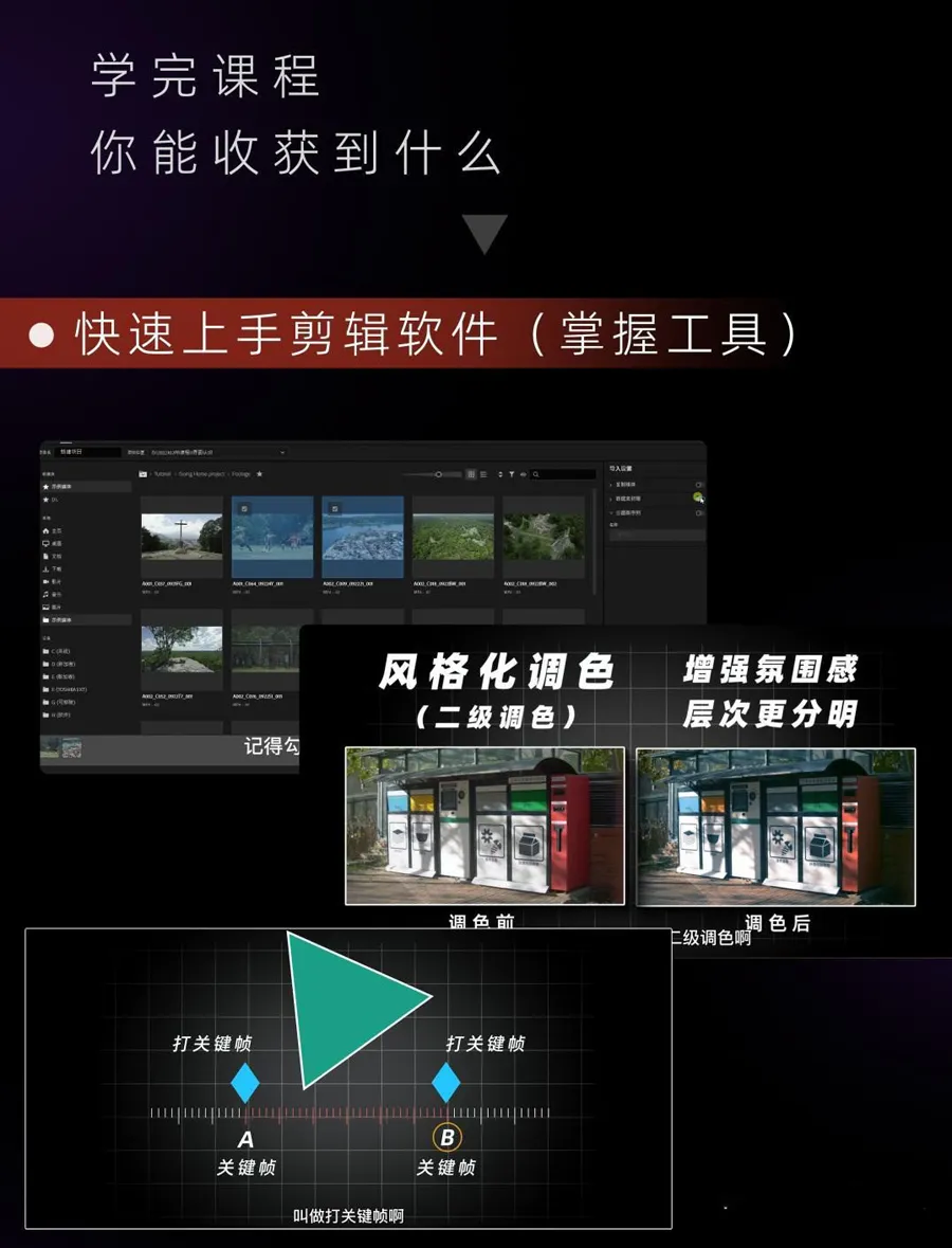 阿晖全能剪辑高手训练营 剪辑思维+达芬奇调色+拍摄技巧一站教学