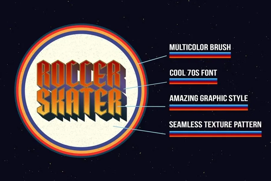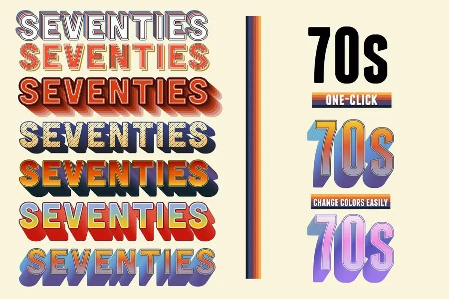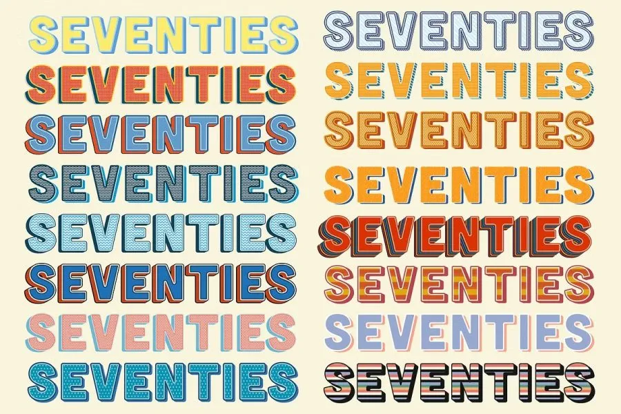 受到 70 年代流行文化的启发,我为 Adobe Illustrator 制作了这 50 种丰富多彩的图形风格。在此图形样式集合中您可以找到:
