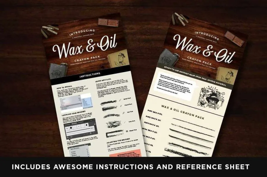 Wax and Oil Crayons:Illustrator的超逼真蜡油蜡笔矢量画笔。感来自于我们在车库里发现的一包 20 世纪 50 年代的蜡油蜡笔 – 因此得名 – 这些画笔重现了 20 世纪中期商业艺术家绘制的粗糙、未经过滤的草图,并将为您的设计和插图增添至关重要的人情味。