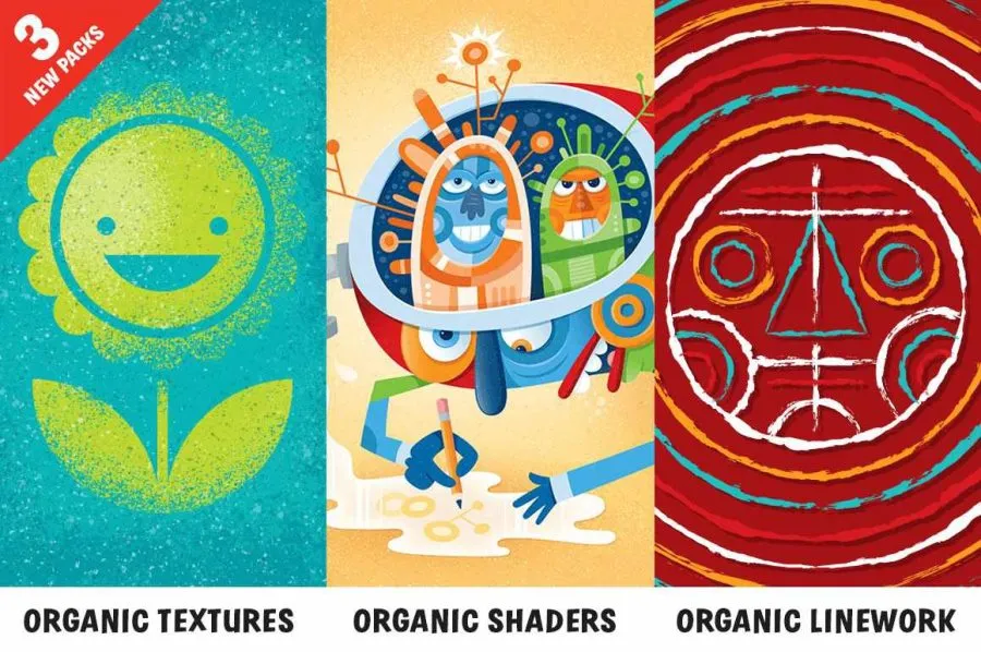 The Awesomely Organic Vector Brush Essential Bundle :用于Ai 的矢量着色画笔(由专业 Illustrator 制作)