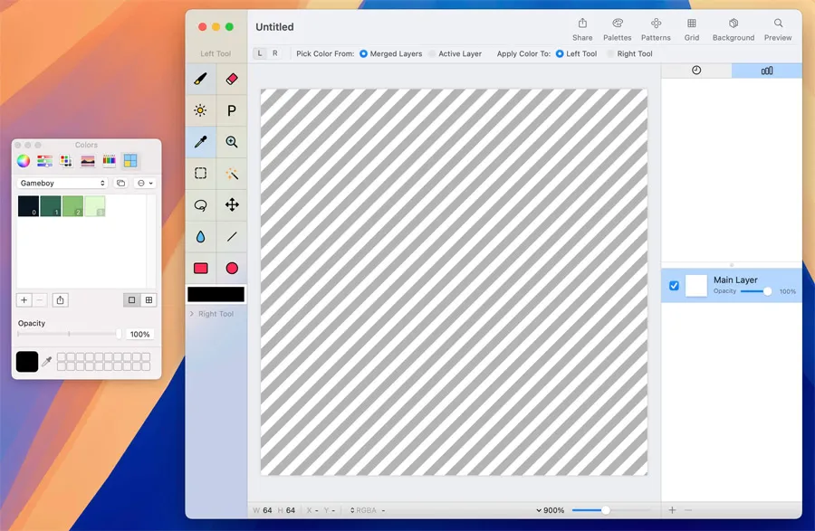 Pixen 是一款专为 macOS 平台打造的像素艺术创作工具,主要面向游戏美术、动画制作者和像素风格插画师。它提供了精准的像素绘图功能、逐帧动画编辑、图层管理与多种导出选项,适用于制作游戏贴图、角色设计、动态图标等多种像素相关应用。Mac 版 Pixen 具备原生界面风格,全面兼容 Apple Silicon 芯片,运行流畅、功能完备,是追求专业像素绘图体验的 Mac 用户理想选择。