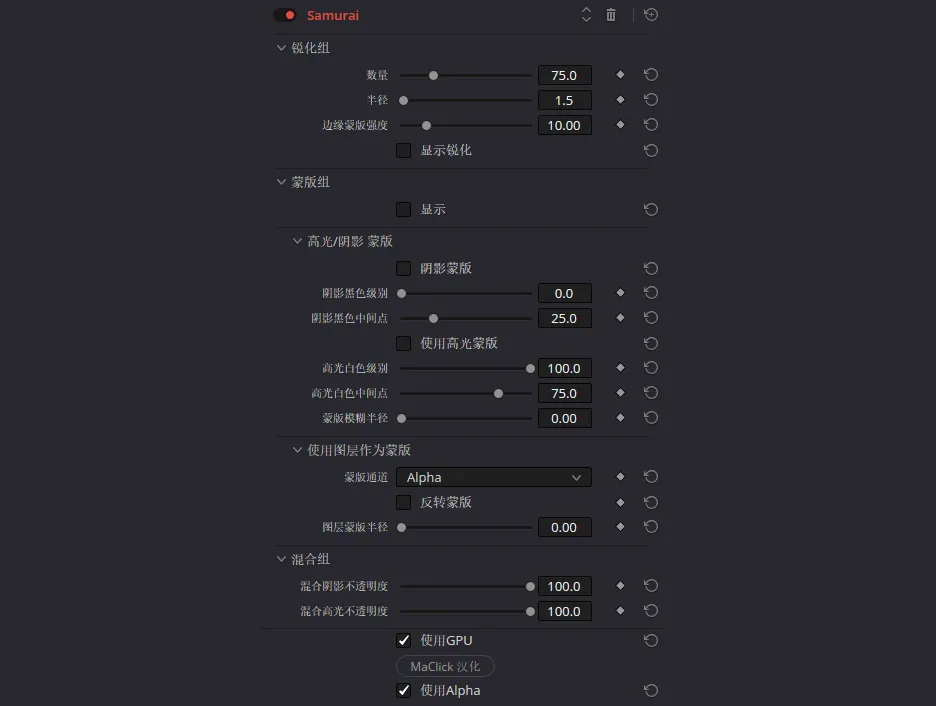 Samurai 插件能够轻松提高视频素材的锐化度,支持GUP加速渲染。某些视频画面片段往往有点柔软,通过提高它锐化使得画面得到更多细节或使画面更加清晰。Samurai插件是拥有智能的边缘感知锐化过滤技术,这将意味着它可以增强眼睛等重要细节,同时不会影响皮肤等区域,而且内置的遮罩工具可以保护阴影和高光区域不被锐化。插件允许你快速做到这一点,让你轻松地隔离镜头的特定区域,只锐化特定区域。