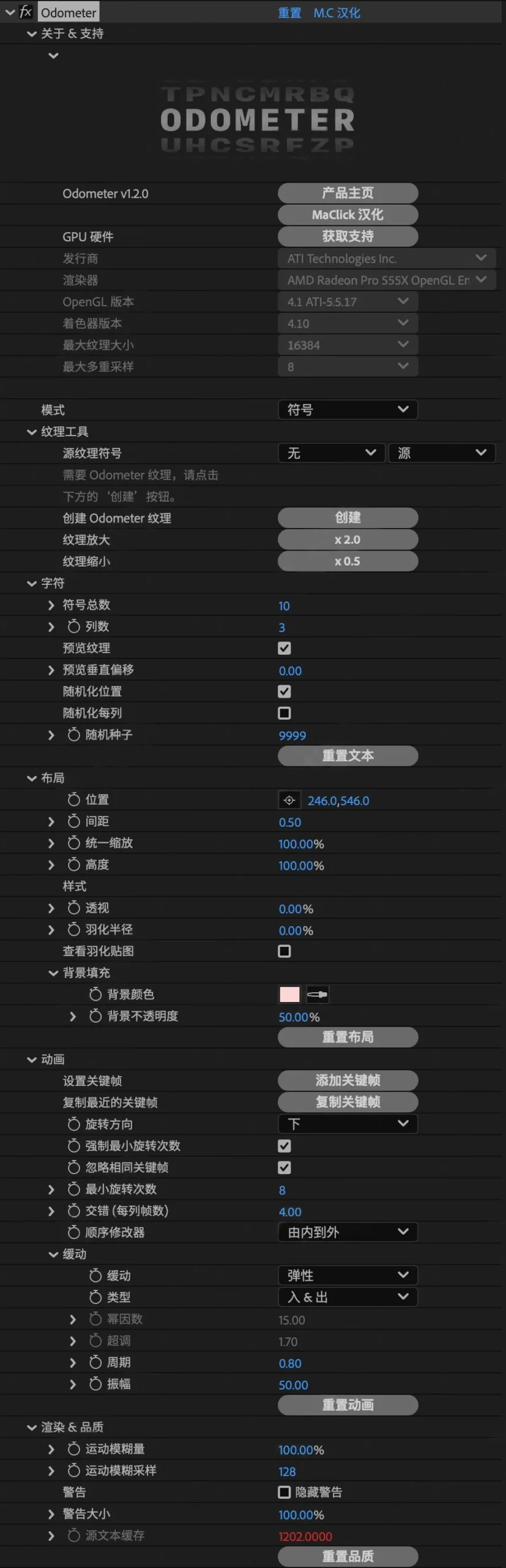 Odometer 以最具视觉吸引力的方式翻转数字、单词和字形。内置透视和羽化,支持字符位数到 99 个0。内置炽热的快速运动模糊和完整的 Penner 缓动预设。