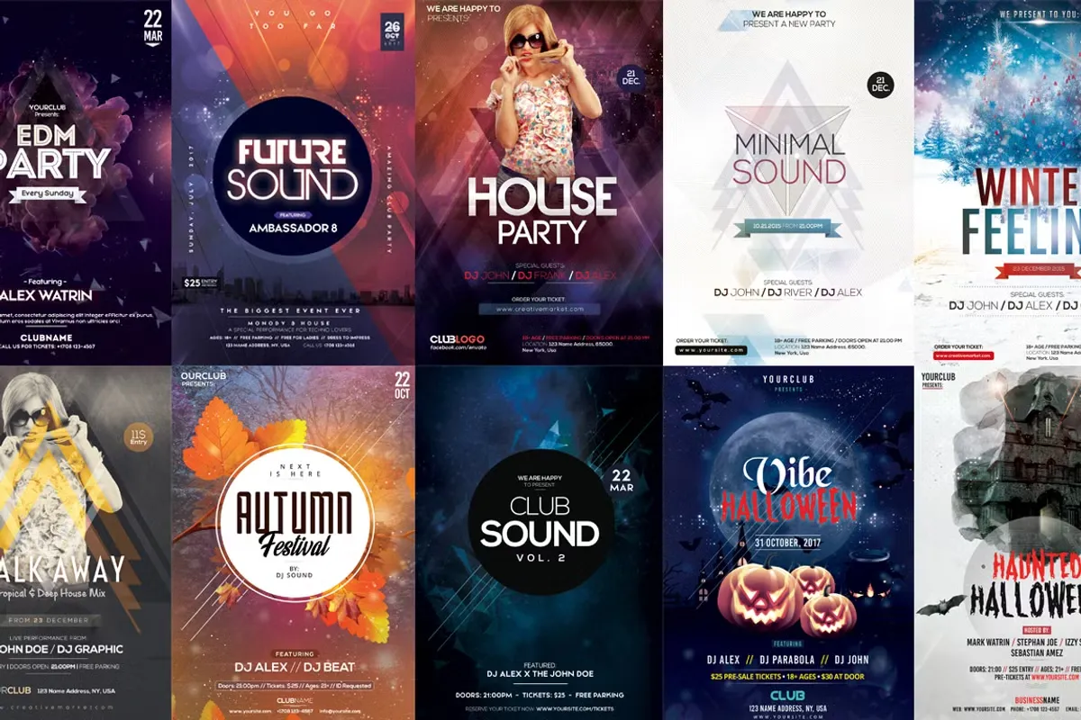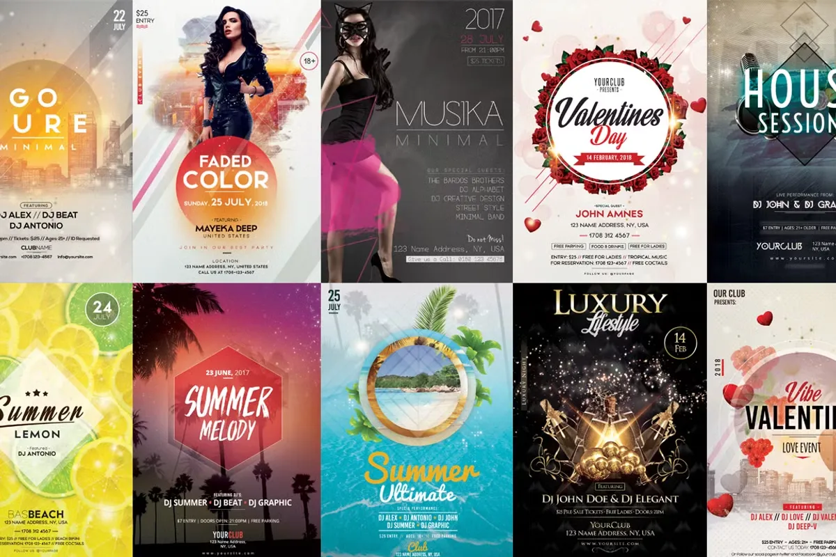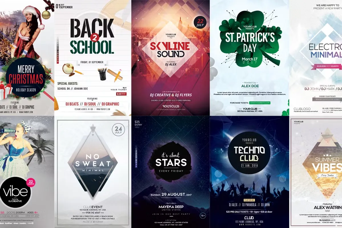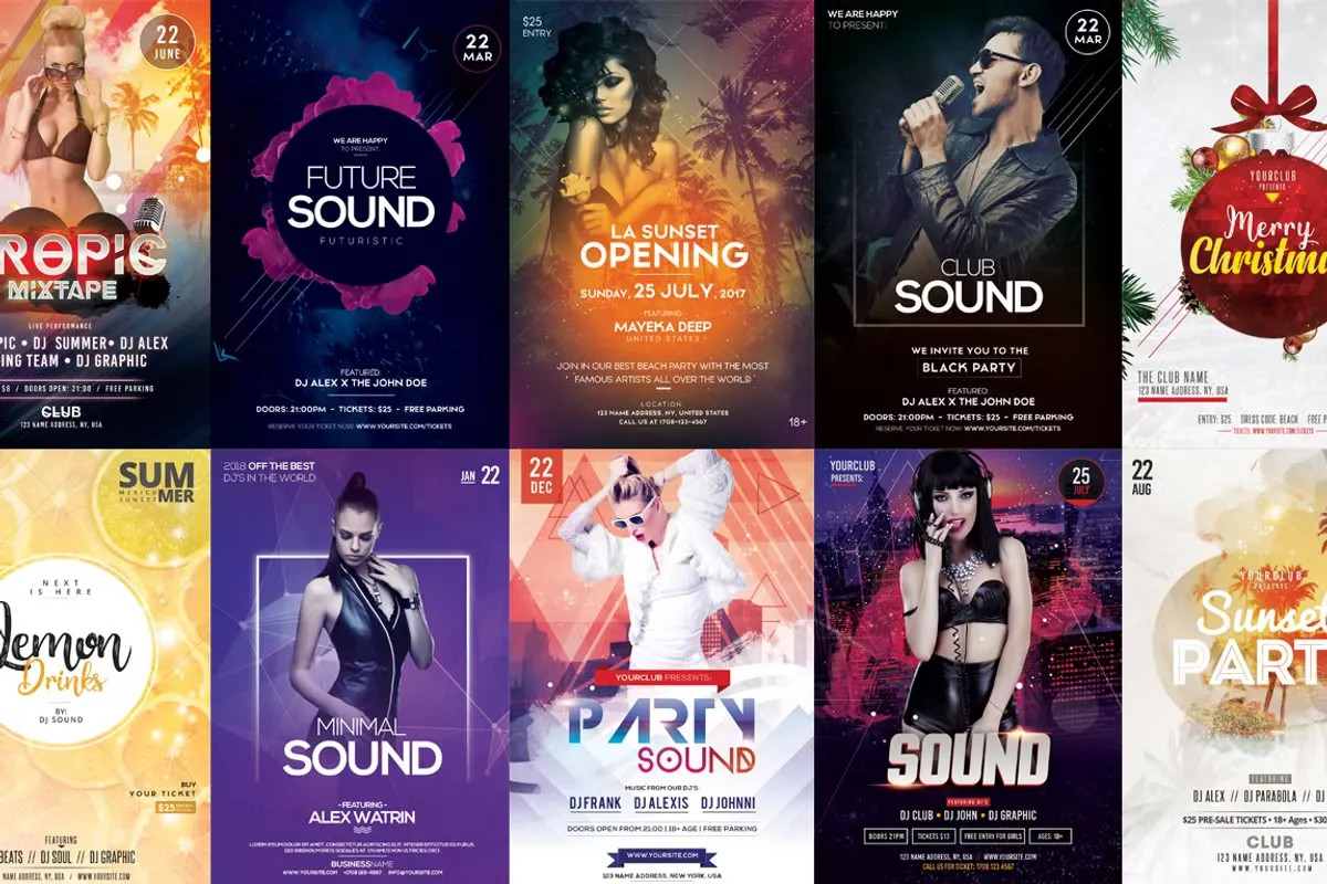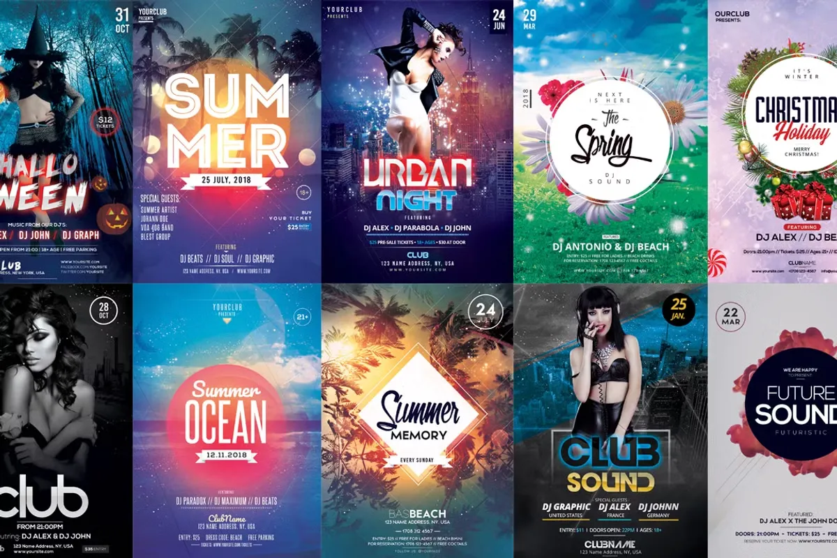 此合集包含100 多个 PSD 传单模板。所有这些传单都可以完全编辑,也可以使用其他颜色并准备好高分辨率打印。这些传单适用于任何俱乐部派对、dj 活动、教堂、圣诞节、新年主题、健身促销、企业、商业产品等。此捆绑包混合了商务传单、体育和活动主题。