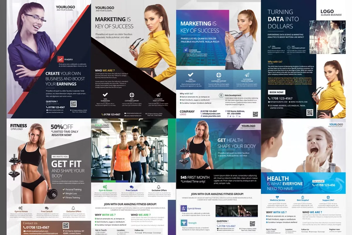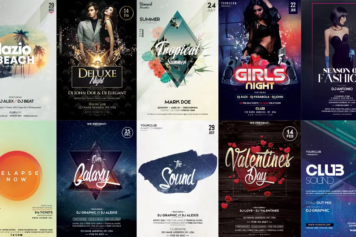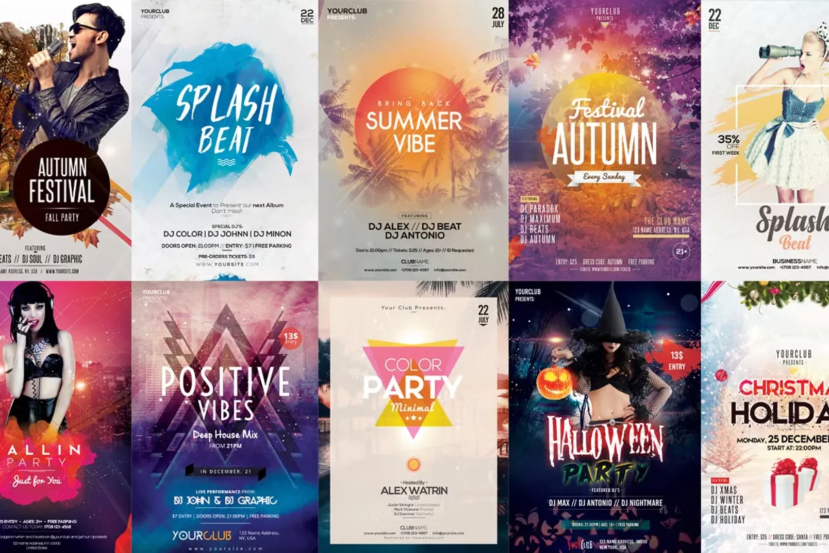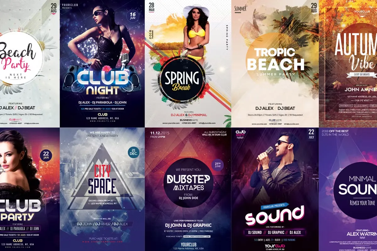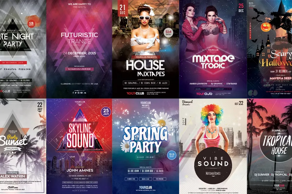 此合集包含100 多个 PSD 传单模板。所有这些传单都可以完全编辑,也可以使用其他颜色并准备好高分辨率打印。这些传单适用于任何俱乐部派对、dj 活动、教堂、圣诞节、新年主题、健身促销、企业、商业产品等。此捆绑包混合了商务传单、体育和活动主题。