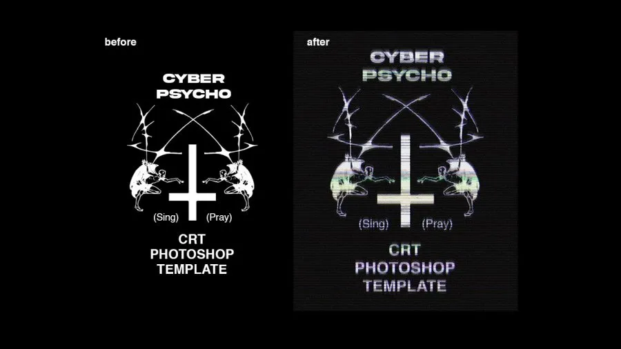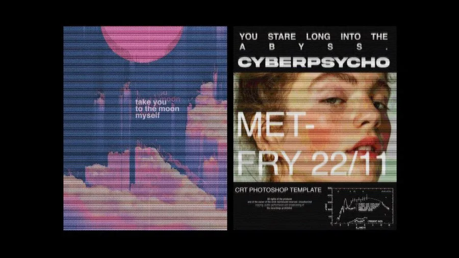 复古老式CRT屏幕色彩显示故障游戏文字图像错位失真特效PSD模板 CyberPsycho CRT Photoshop Template