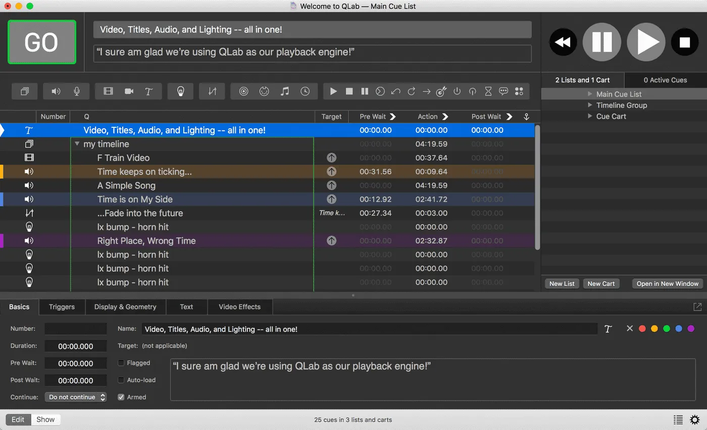 QLab Pro 是一款专为 macOS 设计的专业舞台音视频控制软件,广泛应用于剧院、演唱会、多媒体演出和展览等现场环境。它提供强大的音频播放、视频投影、灯光控制及 MIDI 信号管理功能,帮助用户实现精准的演出内容编排与实时控制。Mac 版利用苹果系统的高性能及稳定性,保证大型演出中信号的流畅传输与可靠响应,是现场技术人员的首选工具。