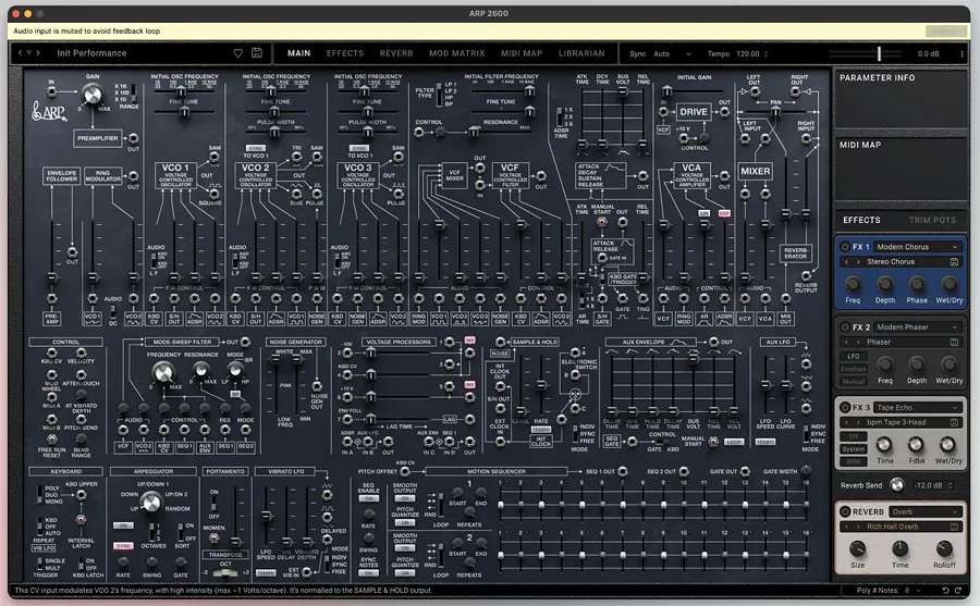 KORG Software ARP 2600 是 KORG 推出的复刻版软件合成器,完整模拟了经典的 ARP 2600 半模块化合成器。它是 KORG Collection 软件套装中的一员,适用于 macOS 和 Windows,可作为插件或独立应用运行。