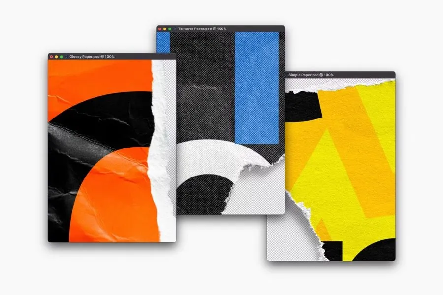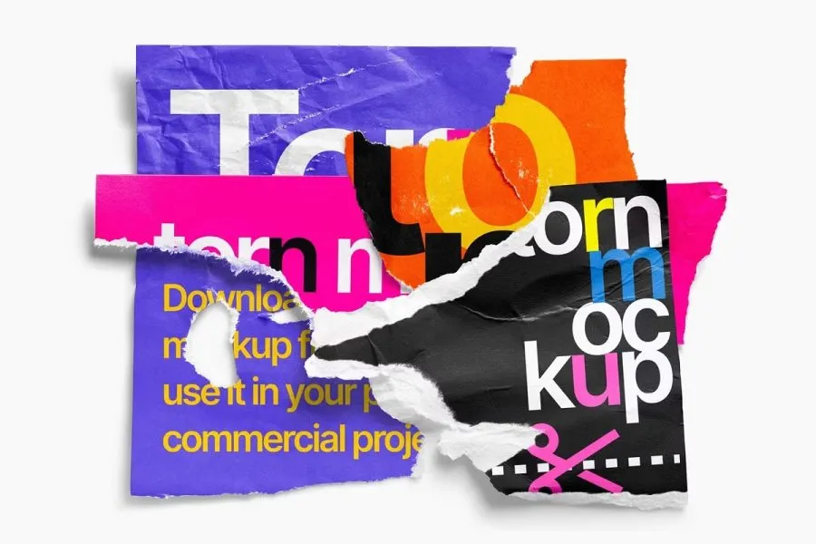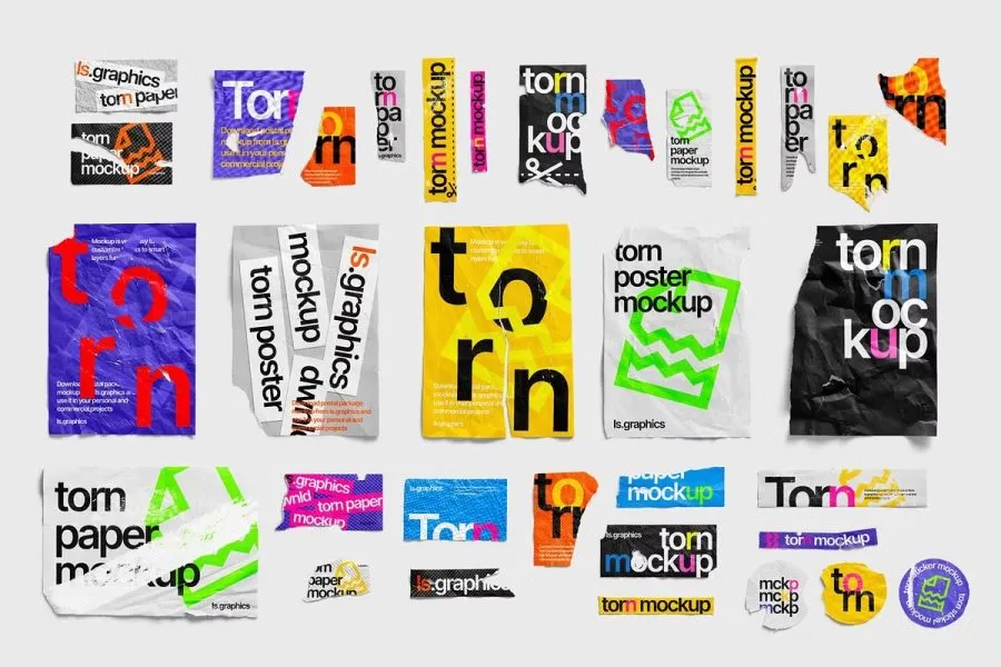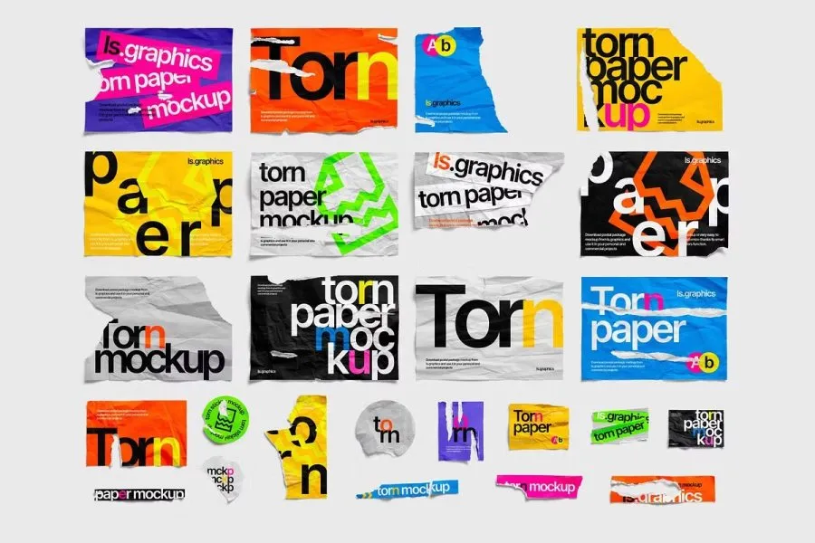 Torn Paper Mockups 拥有80 个美丽逼真的撕纸模型。不同的大小和形状,包括美国和欧盟尺寸。3种纹理风格,适合打印项目的高分辨率。PSD/PSB格式,文件大小:6.04G