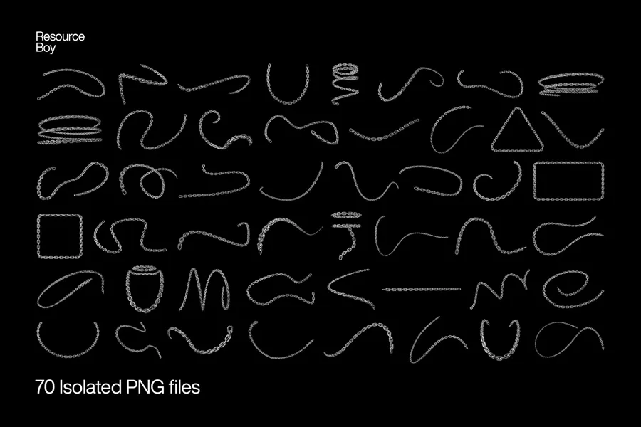 Resource Boy 使用 70 种独特的 8K 分辨率链纹理在短短几秒钟内解决了问题,摆脱了必须始终在艺术作品中发挥创意的压力。摆在您面前的是所有排名最高的链条 PNG 纹理集合,其中包含几个超逼真的 3D 渲染,只需单击几下即可提升您的艺术作品。立即使用它们的每一个瞬间将强烈而尖锐的基调链接到您糟糕的现代设计中。