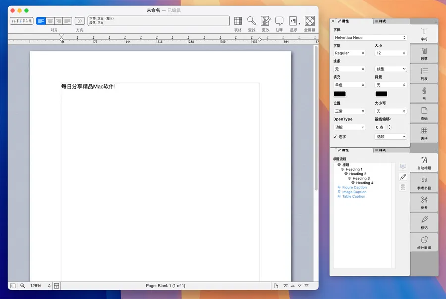 结构化写作支持:内建大纲视图,支持自动编号、标题层级与章节组织,适合撰写论文、专著等长文档。
