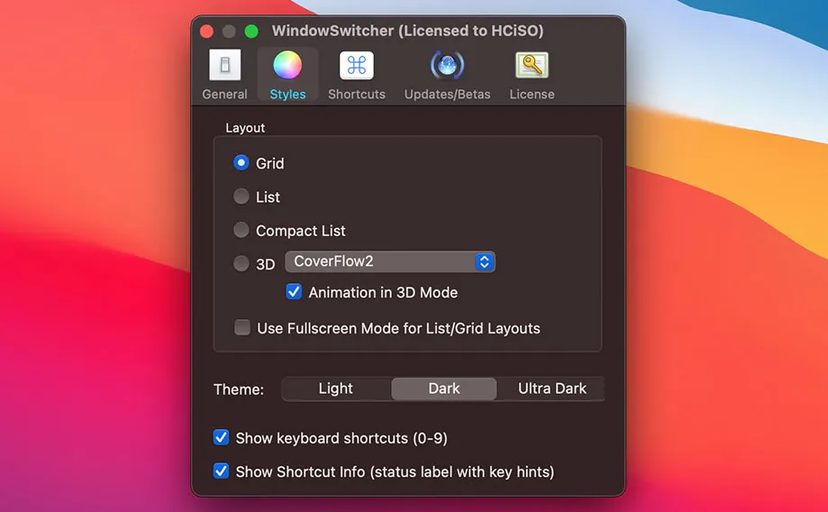 WindowSwitcher 允许您以多种方式显示应用程序窗口: