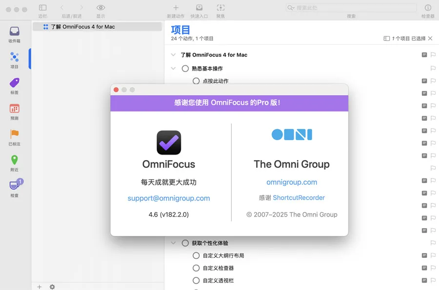 OmniFocus Pro 针对 macOS 特性深度定制,支持 Apple Silicon、Retina 显示、Spotlight 搜索、快捷键操作与分享扩展,完美融入系统生态。 -