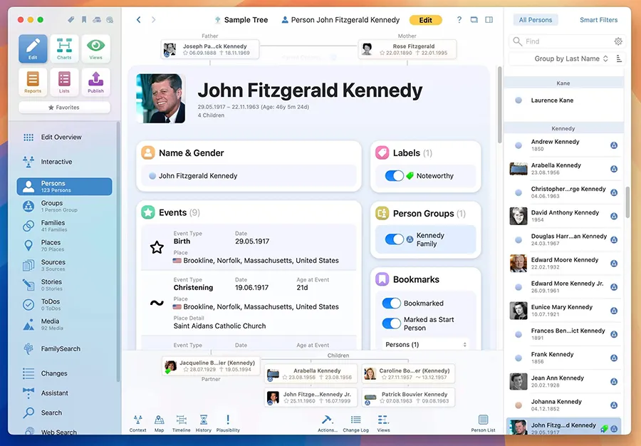 MacFamilyTree 是一款功能全面、操作便捷的家谱管理软件,特别适合希望系统化整理家族历史的用户。其直观的家谱树、多媒体资料整合、多视图模式和跨设备同步功能,使家谱构建和管理变得高效且愉悦。如果您希望在 Mac 上记录和传承家族历史,家谱大师无疑是值得选择的工具。