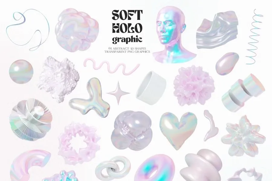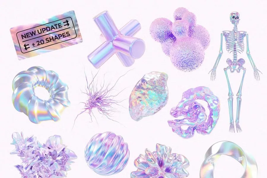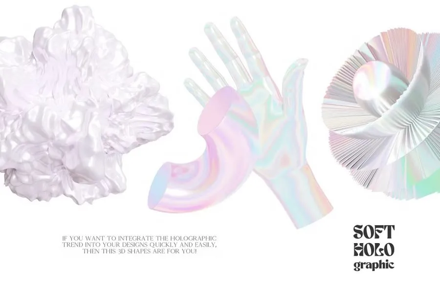 如果您想快速轻松地将全息趋势融入您的设计中,那么这款 3D 形状非常适合您!易于使用 – 每个图像都以 PNG 格式提供,因此您可以在您喜欢的每个图形软件中使用它们。